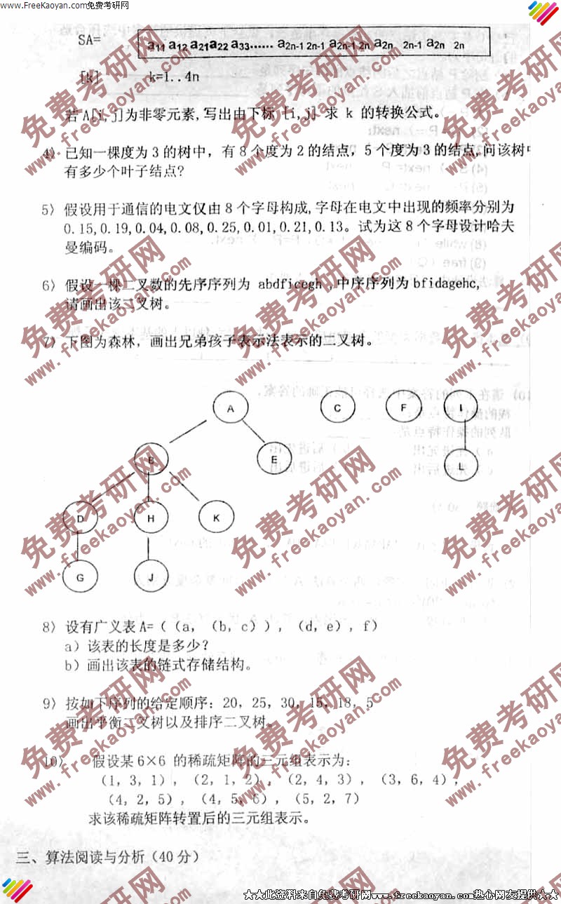 西南交通大学2004年考研真题-数据结构试题(3)