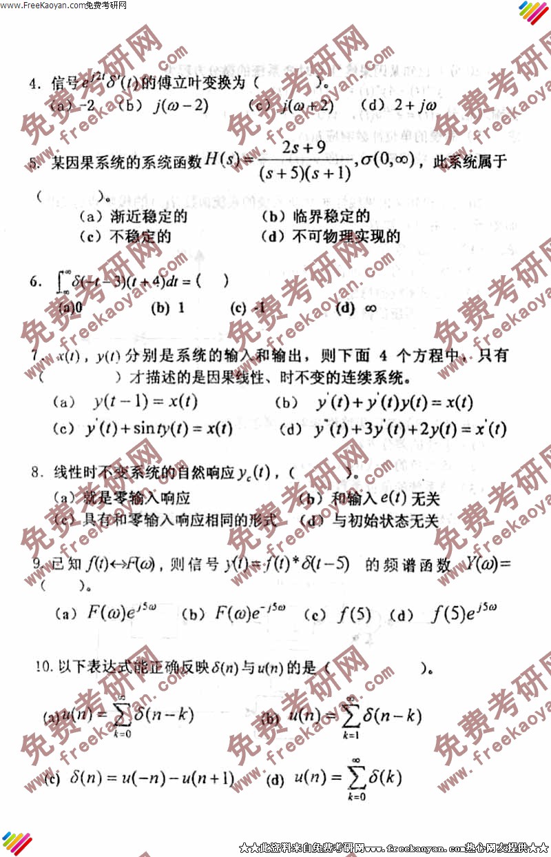 西南交通大学2004年考研真题-信号与系统试题(2)