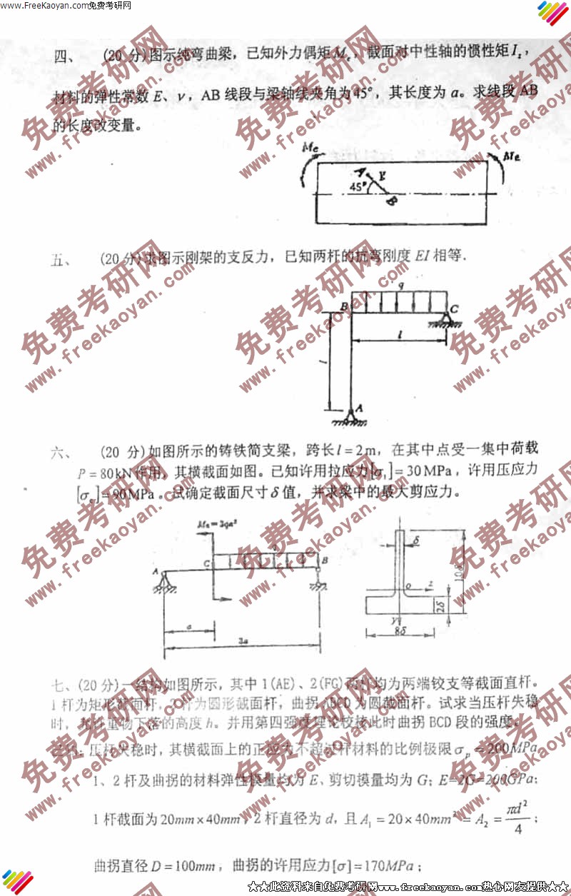 专业课考研经验 本站小编 FreeKaoyan 2018-01-22西南交通大学2004年考研真题-材料力学试题