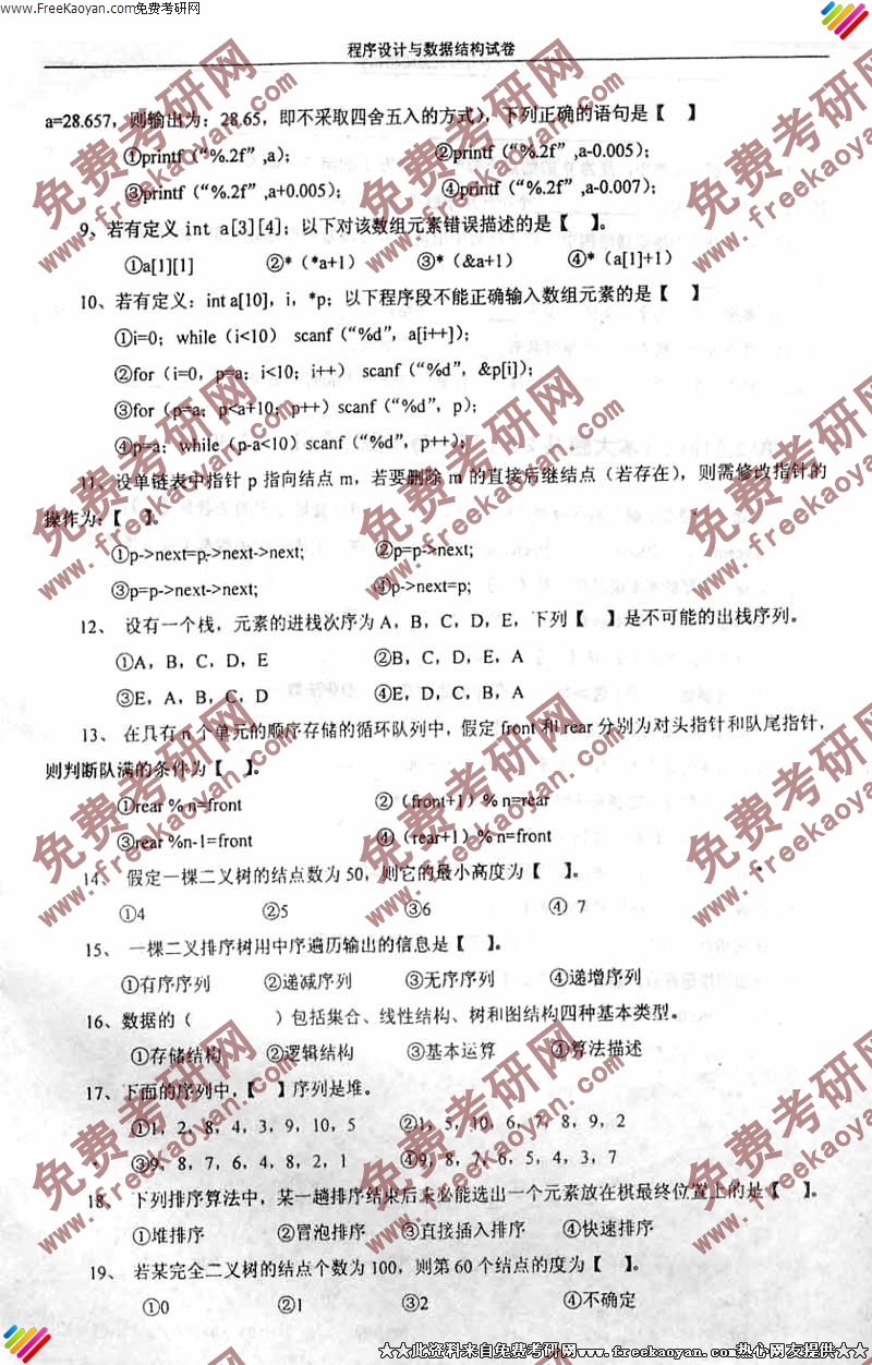 专业课考研经验 本站小编 FreeKaoyan 2018-01-22西南交通大学2004年考研真题-程序设计试题