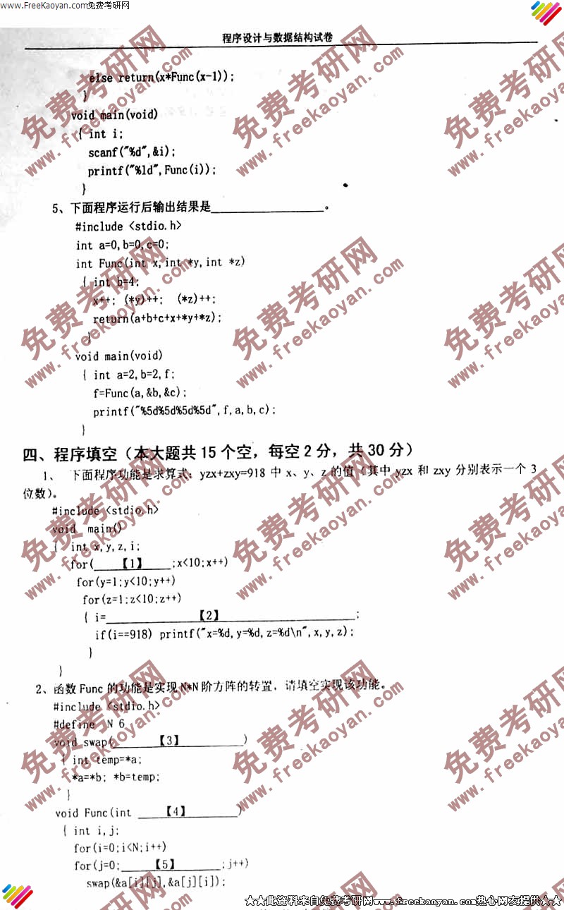 西南交通大学2005年考研真题-程序设计与数据结构试题(5)