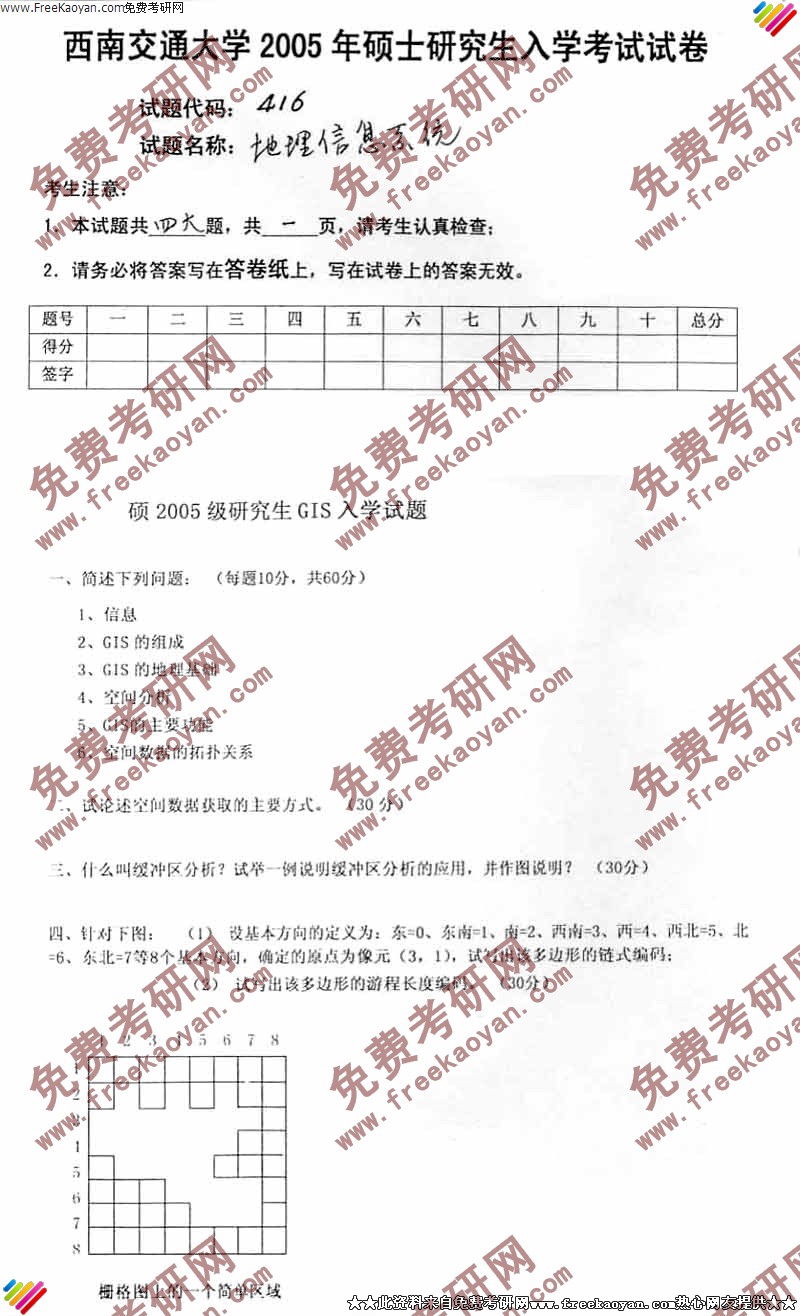 专业课考研经验 本站小编 FreeKaoyan 2018-01-22西南交通大学2004年考研真题-地理信息系统试题