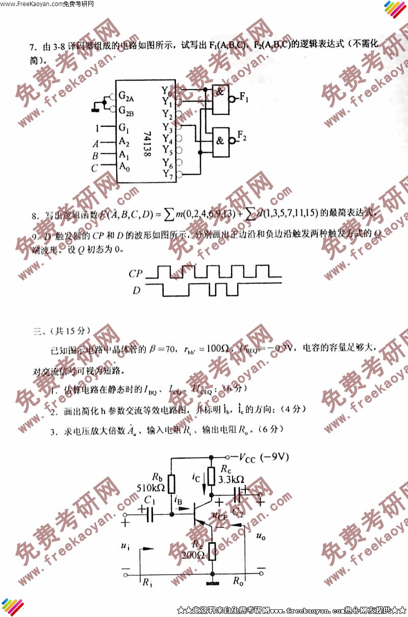 西南交通大学2005年考研真题-电子技术基础试题(3)
