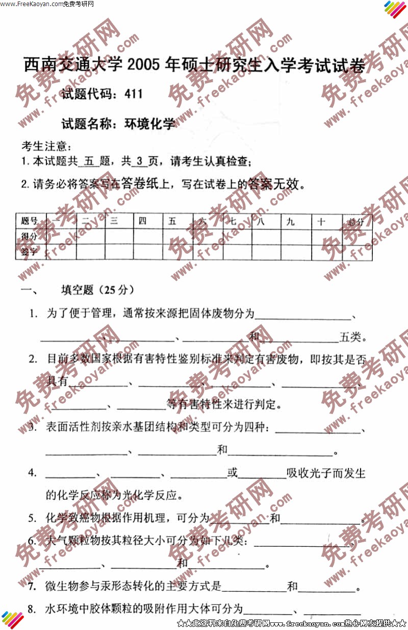 相关话题/考研真题 环境 西南交通大学 化学试题