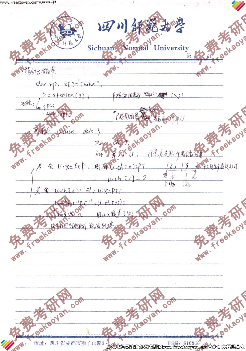 专业课考研经验 本站小编 FreeKaoyan 2018-01-22西南交通大学2005年考研真题-程序设计与数据结构试题