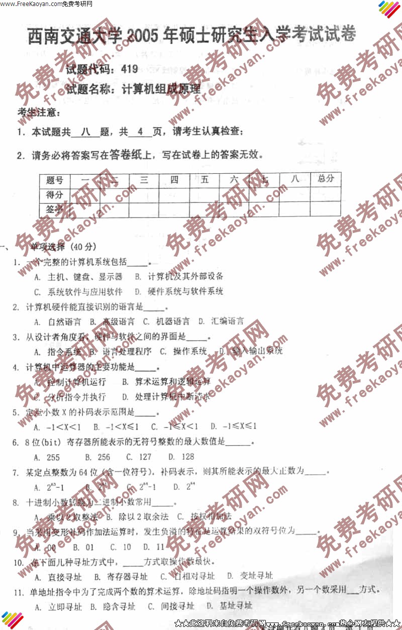 专业课考研经验 本站小编 FreeKaoyan 2018-01-22西南交通大学2005年考研真题-计算机辅导班资料