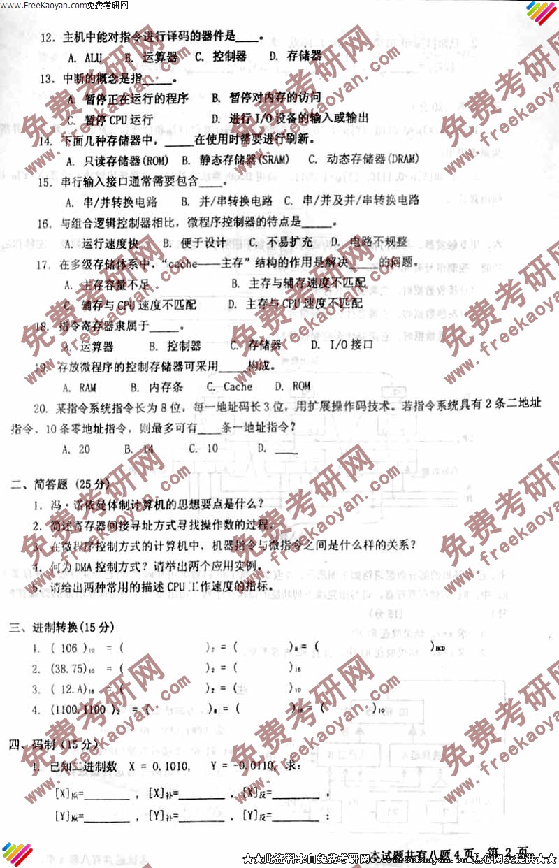 西南交通大学2005年考研真题-计算机组成原理(2)