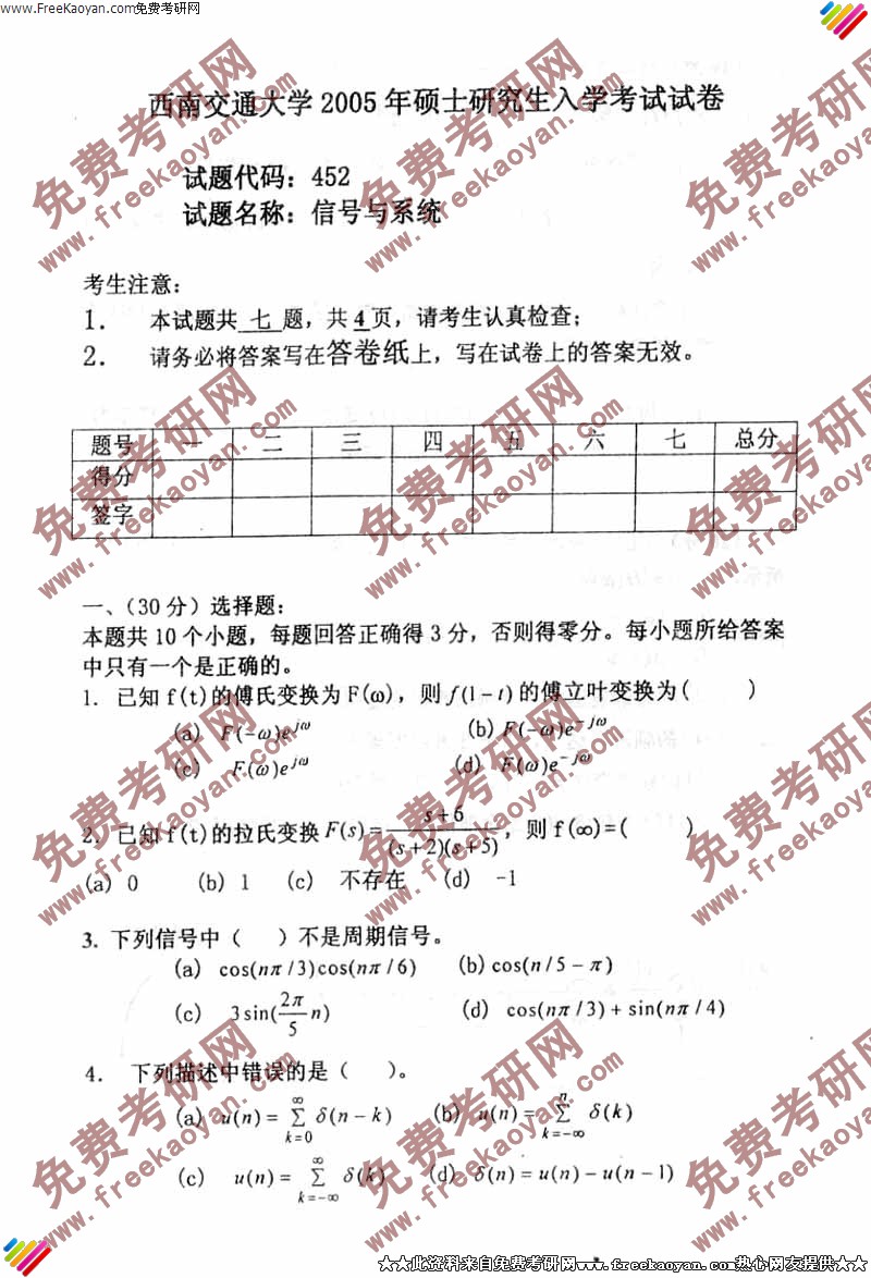专业课考研经验 本站小编 FreeKaoyan 2018-01-22西南交通大学2004年考研真题-信号与系统试题