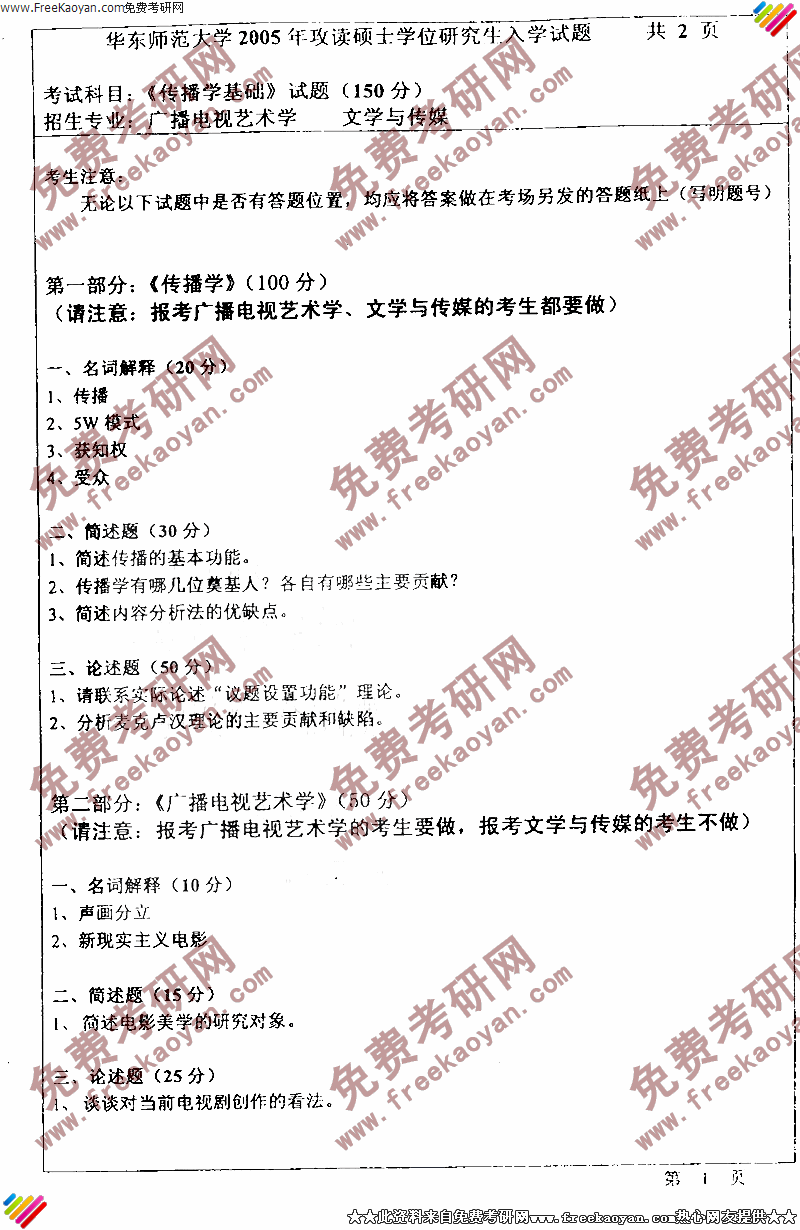 专业课考研经验 本站小编 FreeKaoyan 2018-01-22华东师范大学2004年考研真题-传播学基础