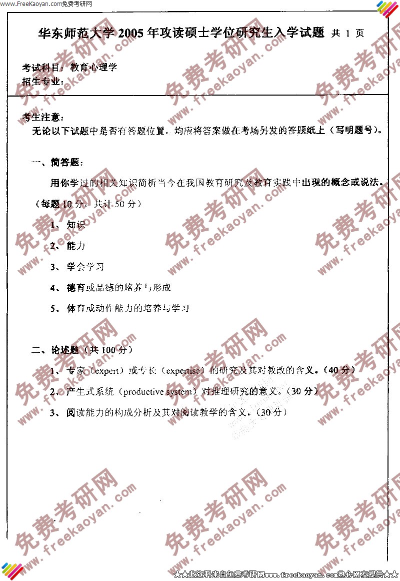 专业课考研经验 本站小编 FreeKaoyan 2018-01-22华东师范大学2005年考研真题-传播学基础