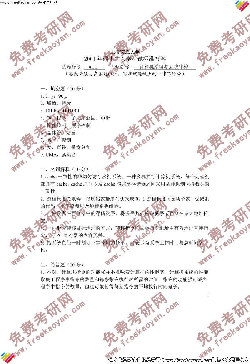 上海交通大学2001年考研真题-计算机原理与系统结构(5)