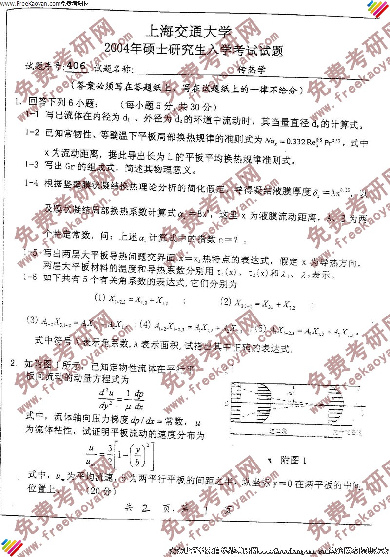 上海交通大学2004年考研真题-传热学