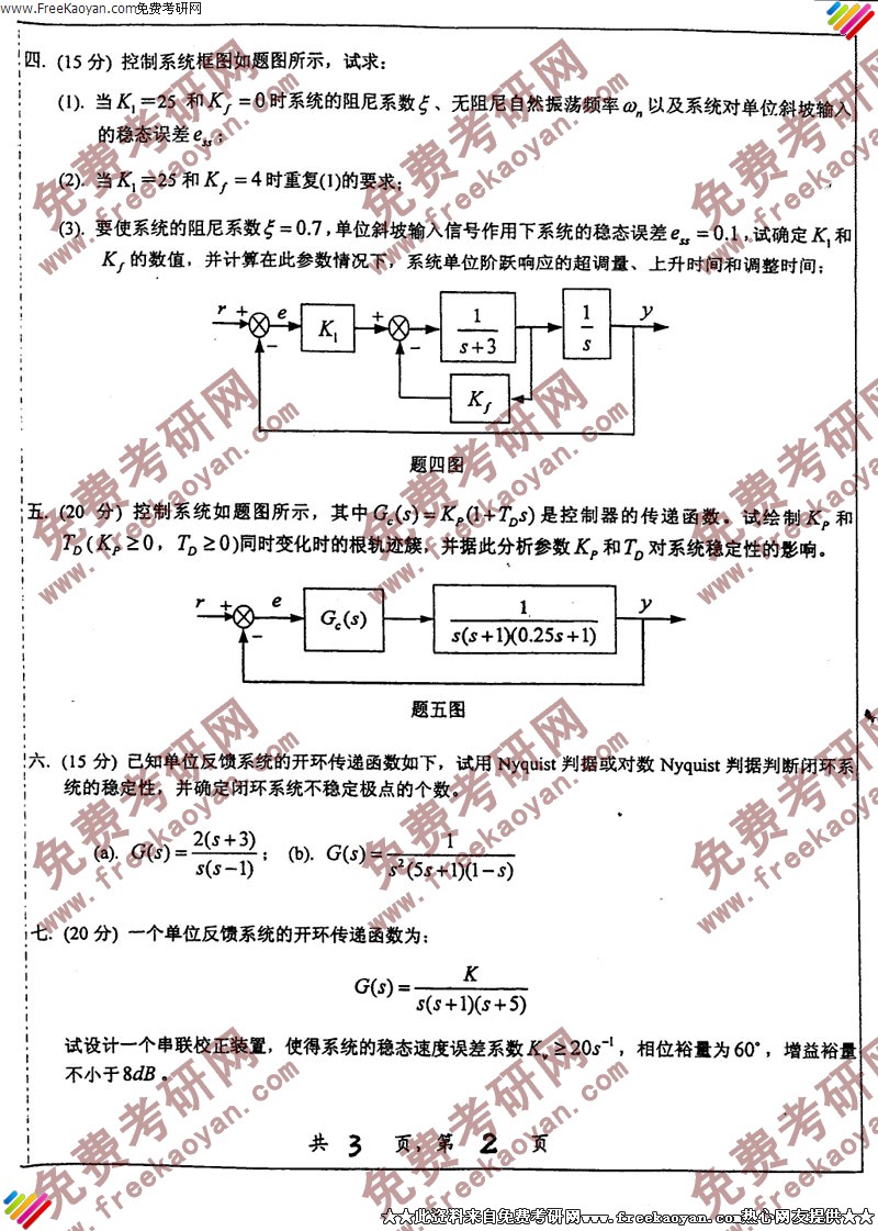 专业课考研经验 本站小编 FreeKaoyan 2018-01-22上海交通大学2005年考研真题-自动控制理论(含现代控制)