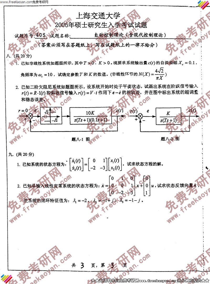上海交通大学2006年考研真题-自动控制理论(含现代控制)(3)