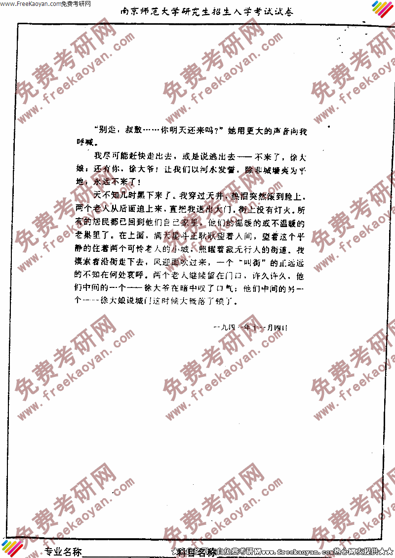 南京师范大学2003年考研真题-作品评论与写作(10)