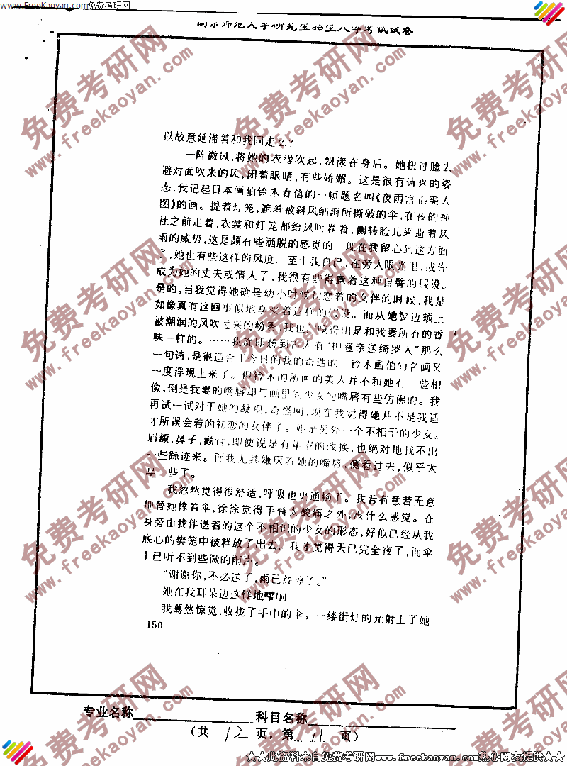 专业课考研经验 本站小编 FreeKaoyan 2018-01-22南京师范大学2003年考研真题-作品评论与写作