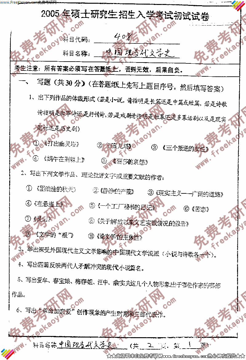 相关话题/南京师范大学 考研真题 中国现当代文学史