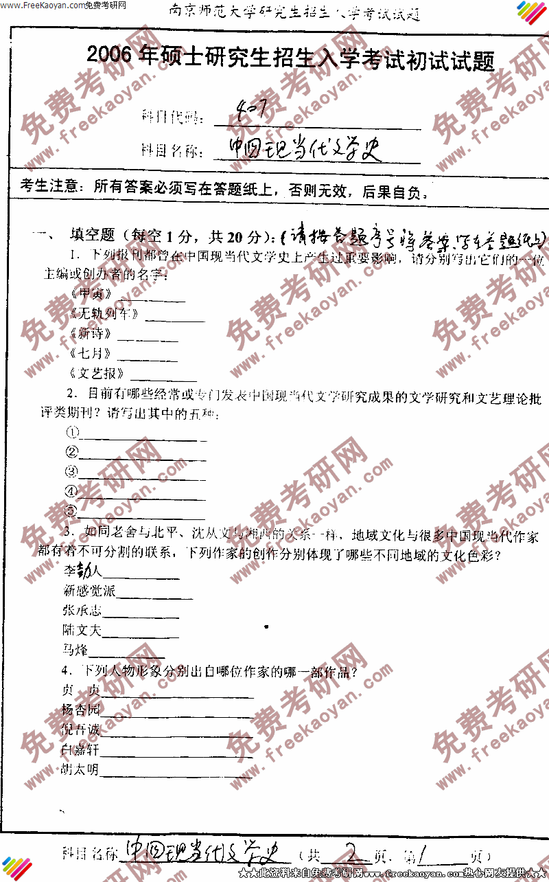 相关话题/南京师范大学 考研真题 中国现当代文学史