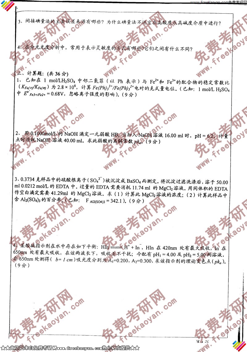 华东师范大学2005年考研真题-分析化学(含仪器分析)(4)