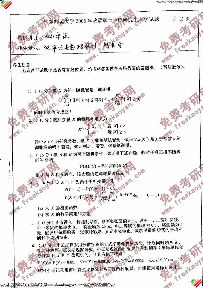 专业课考研经验 本站小编 FreeKaoyan 2018-01-22华东师范大学2005年考研真题-创作