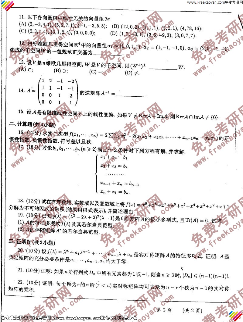 相关话题/华东师范大学 考研真题 高等代数