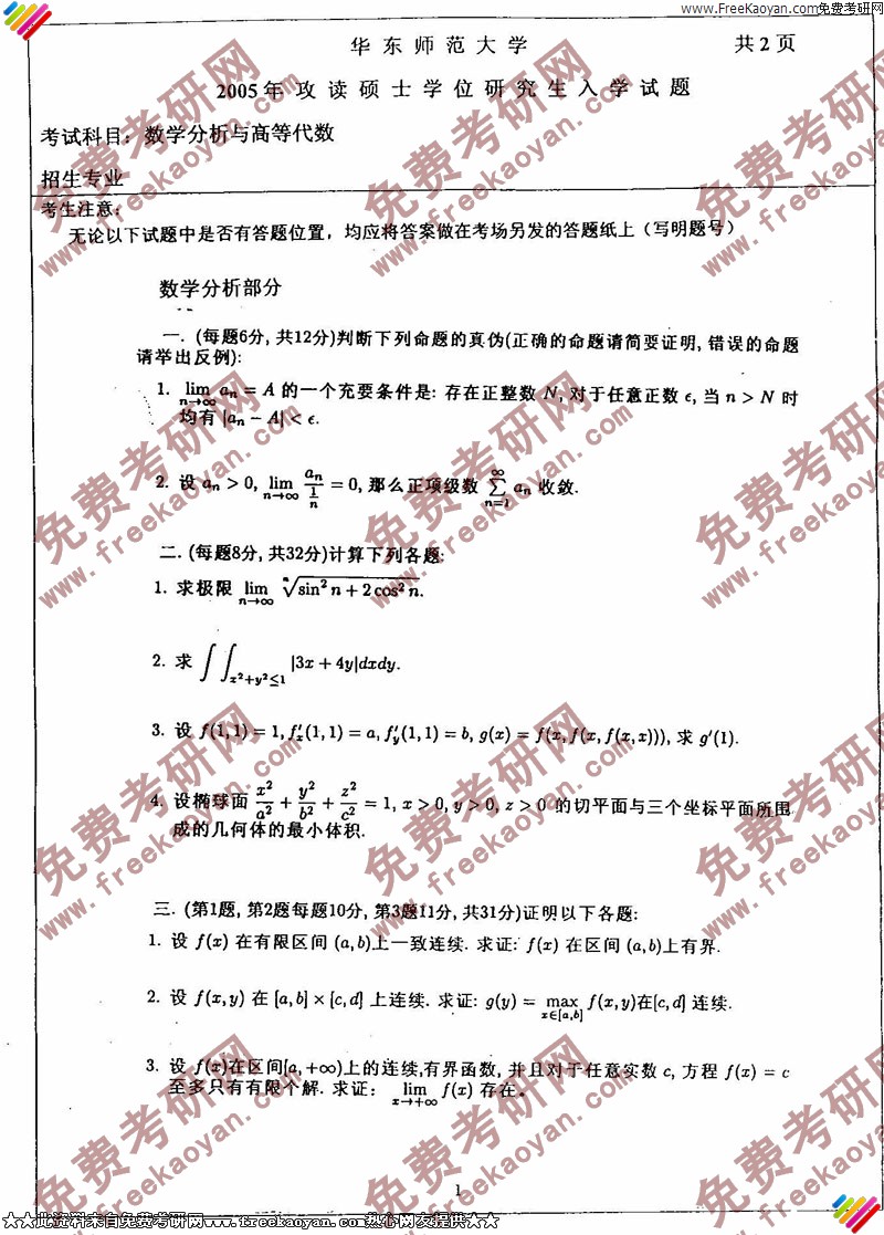 相关话题/考研真题 华东师范大学 数学分析 高等代数
