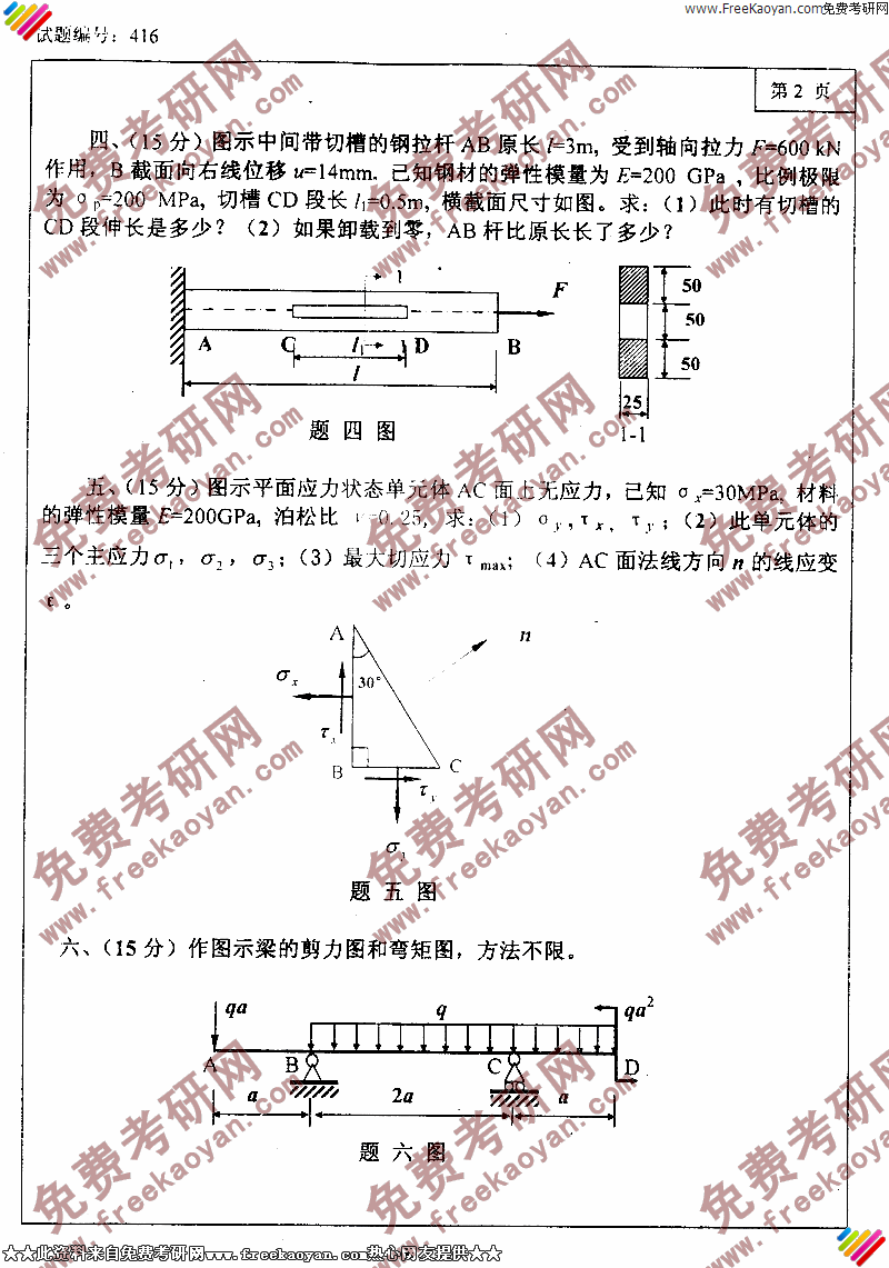 专业课考研经验 本站小编 FreeKaoyan 2018-01-22大连理工大学2003年考研真题-材料力学