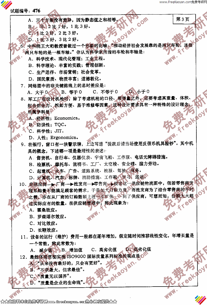 专业课考研经验 本站小编 FreeKaoyan 2018-01-22大连理工大学2003年考研真题-管理基础知识