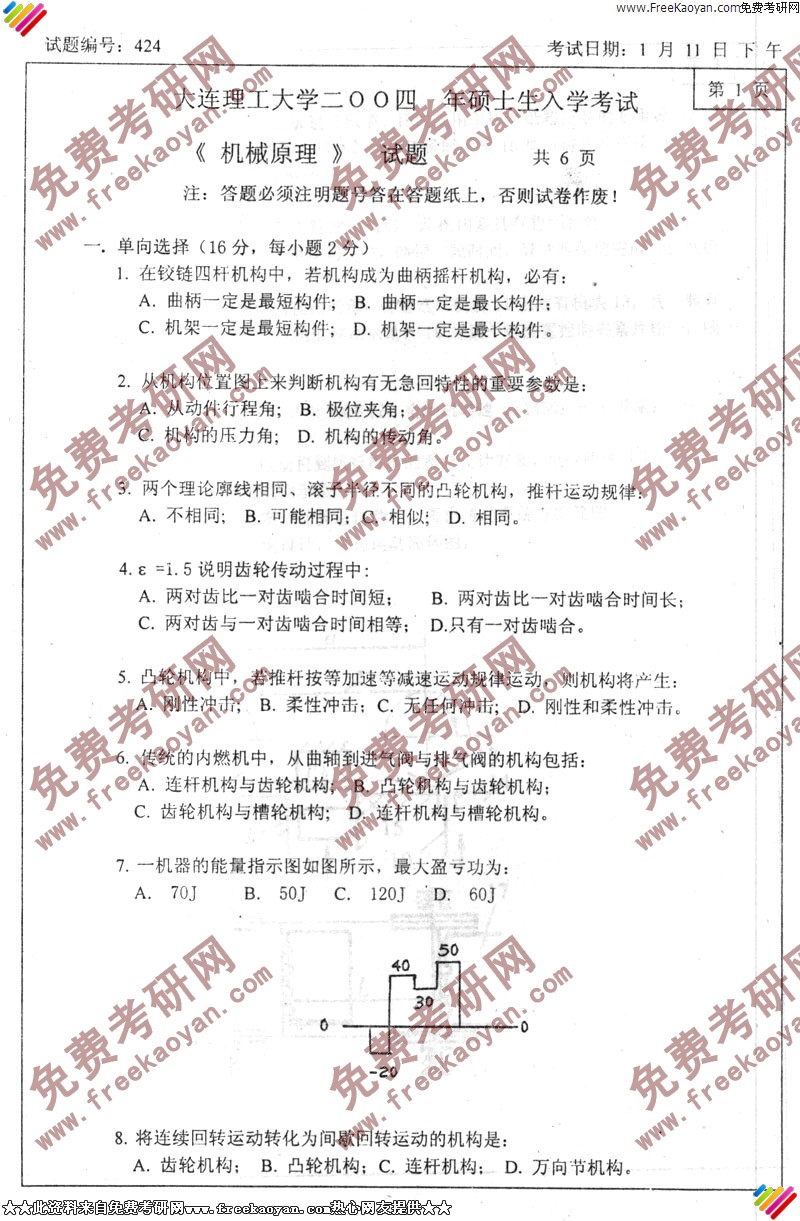 大连理工大学2004年考研真题-机械原理