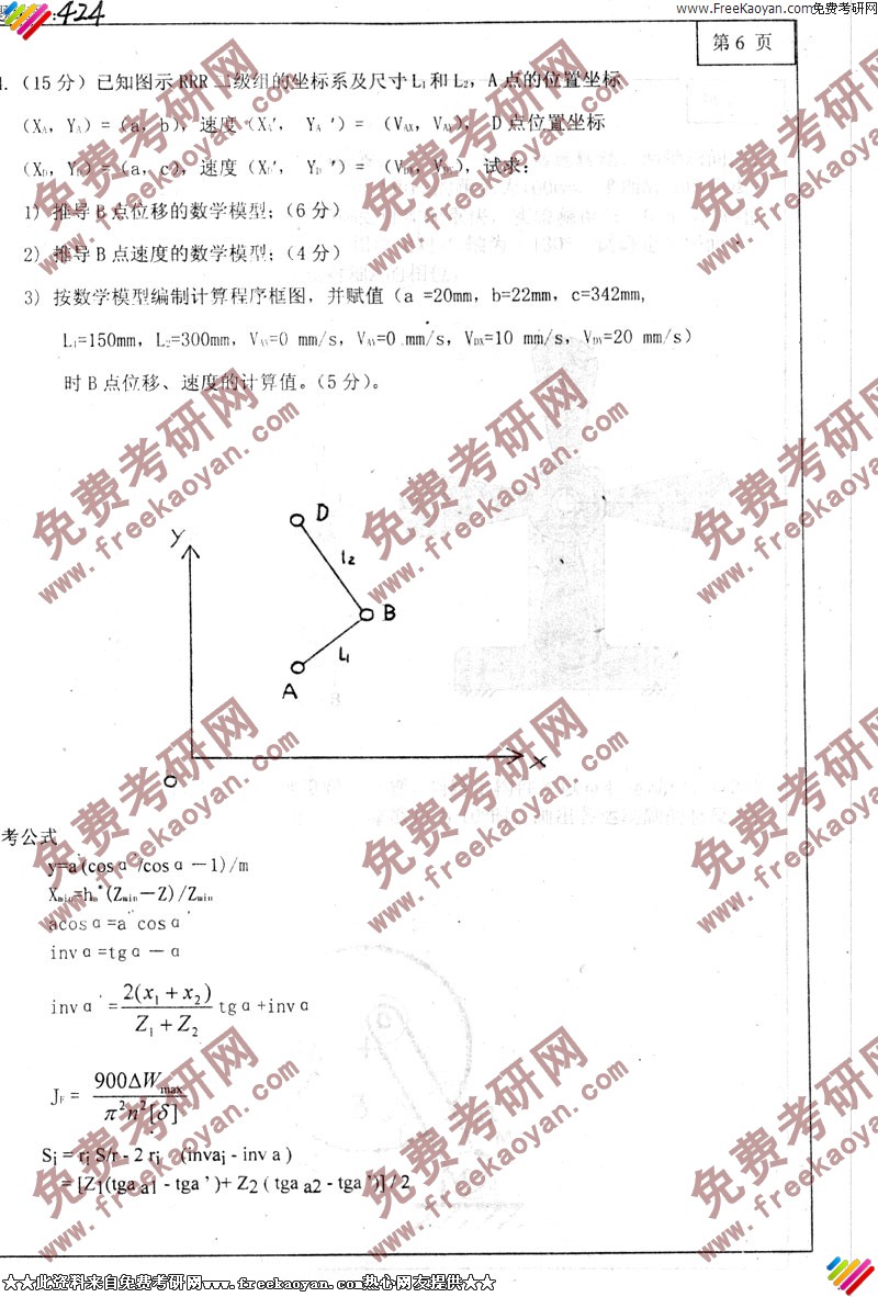 专业课考研经验 本站小编 FreeKaoyan 2018-01-22大连理工大学2003年考研真题-机械原理