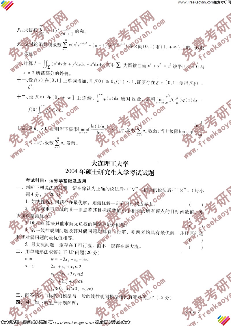 相关话题/考研真题 大连理工大学 基础 运筹学
