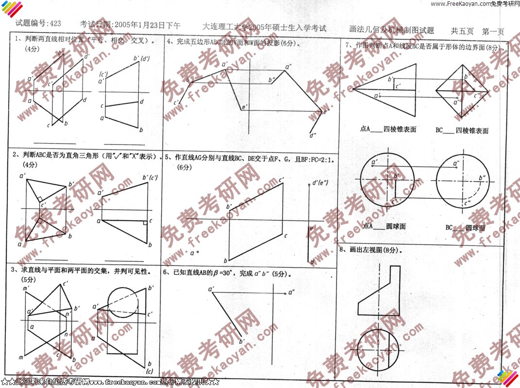 专业课考研经验 本站小编 FreeKaoyan 2018-01-22大连理工大学2004年考研真题-画法几何及机械制图