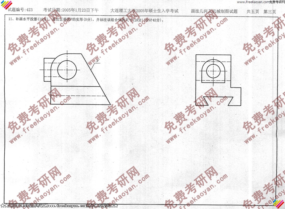专业课考研经验 本站小编 FreeKaoyan 2018-01-22大连理工大学2004年考研真题-画法几何及机械制图