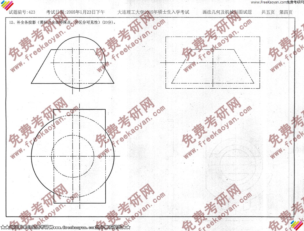 专业课考研经验 本站小编 FreeKaoyan 2018-01-22大连理工大学2004年考研真题-画法几何及机械制图