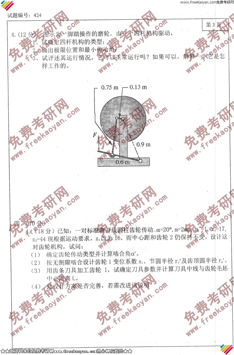 专业课考研经验 本站小编 FreeKaoyan 2018-01-22大连理工大学2003年考研真题-机械原理