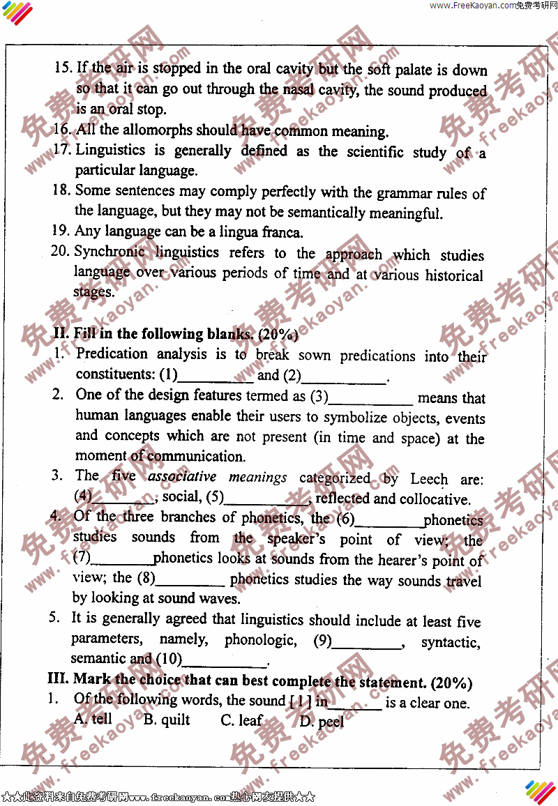 相关话题/大连外国语大学 考研真题 英语语言学