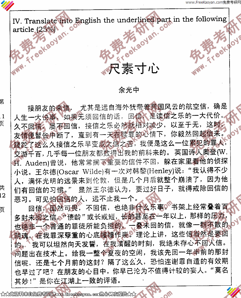 专业课考研经验 本站小编 FreeKaoyan 2018-01-22大连外国语大学2003年考研真题-英美文学
