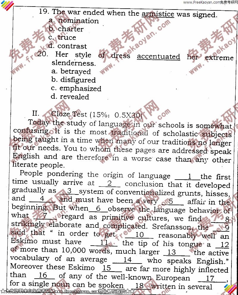 专业课考研经验 本站小编 FreeKaoyan 2018-01-22大连外国语大学2003年考研真题-二外英语