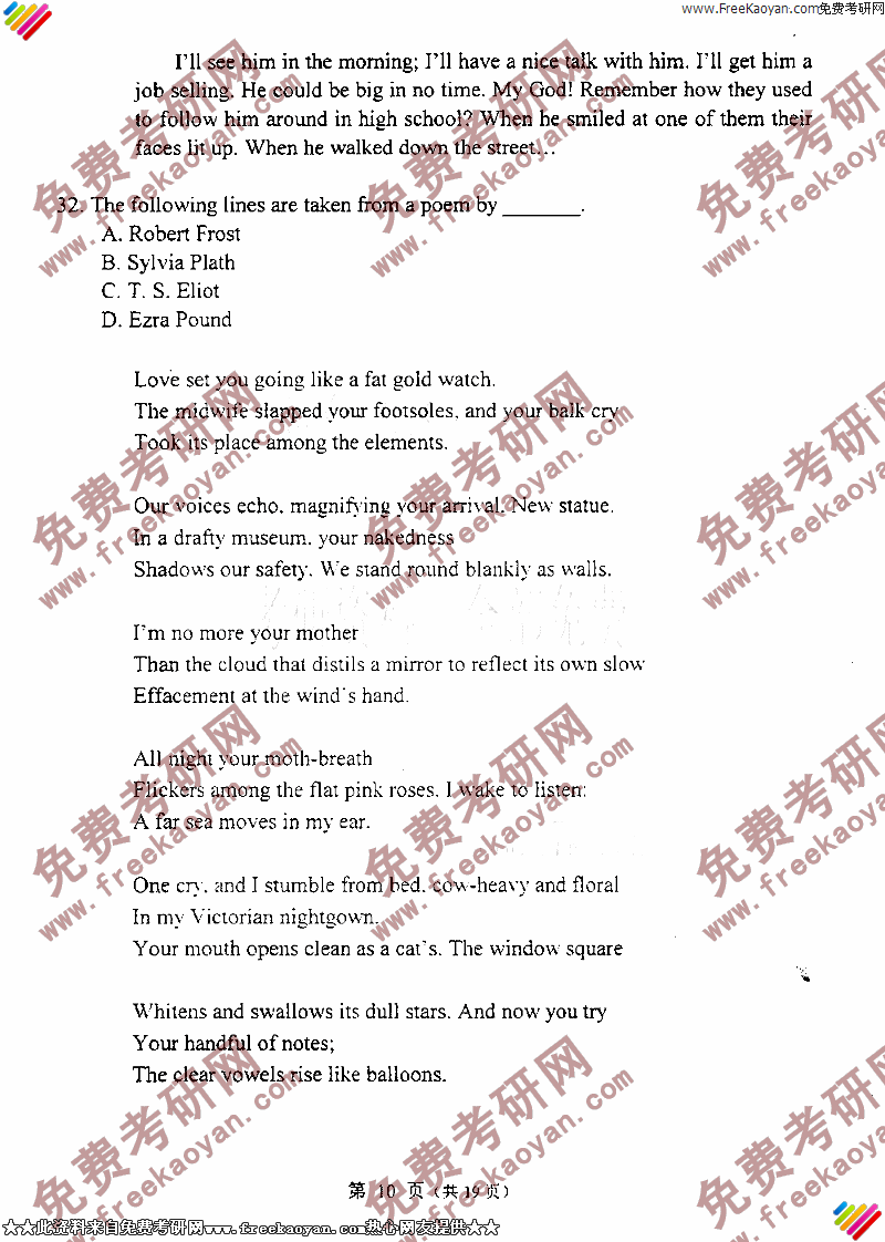 相关话题/大连外国语大学 考研真题 英美文学