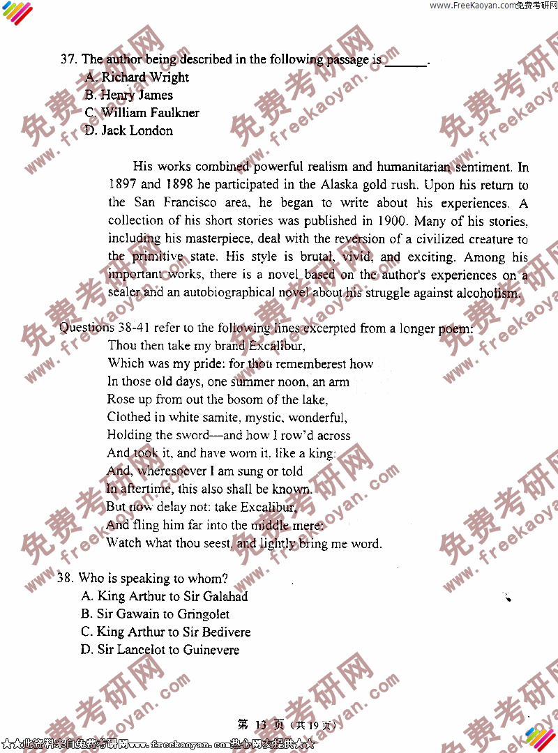 专业课考研经验 本站小编 FreeKaoyan 2018-01-22大连外国语大学2003年考研真题-英美文学