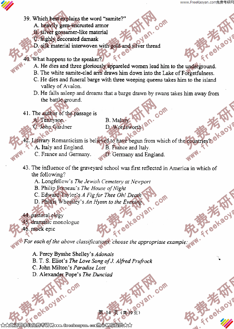 专业课考研经验 本站小编 FreeKaoyan 2018-01-22大连外国语大学2003年考研真题-英美文学