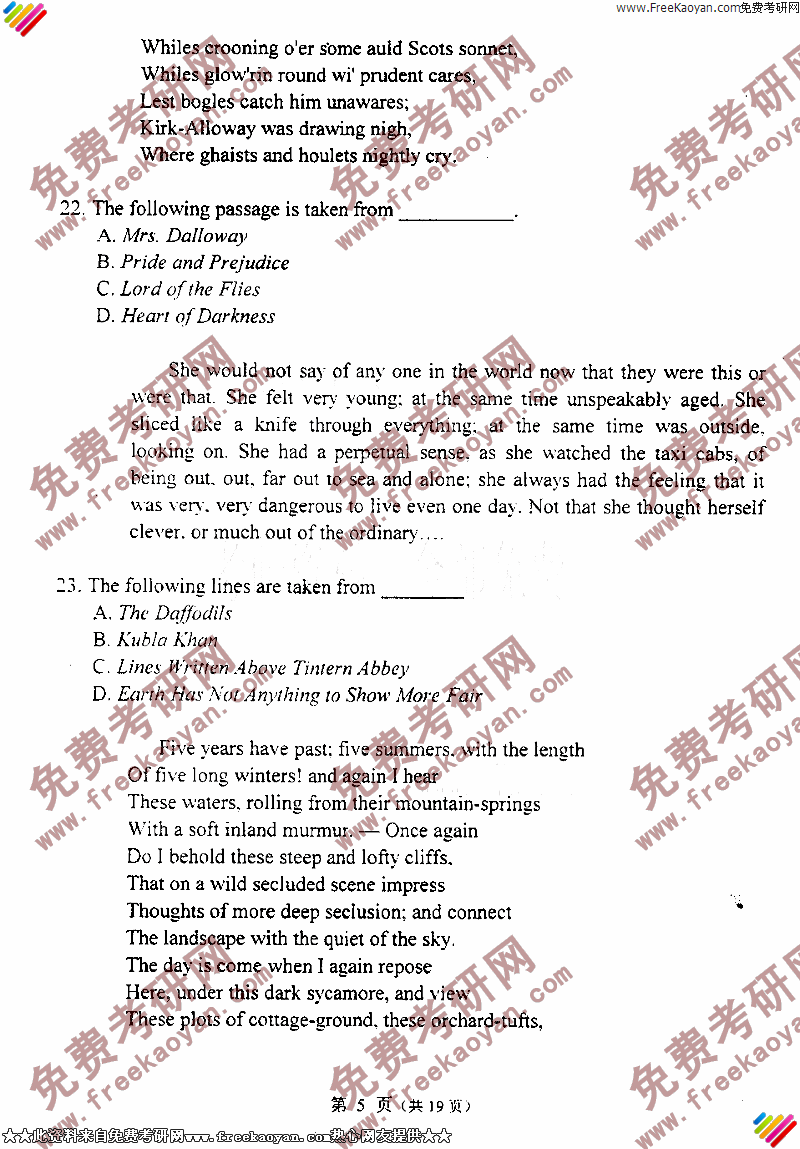 专业课考研经验 本站小编 FreeKaoyan 2018-01-22大连外国语大学2003年考研真题-英美文学