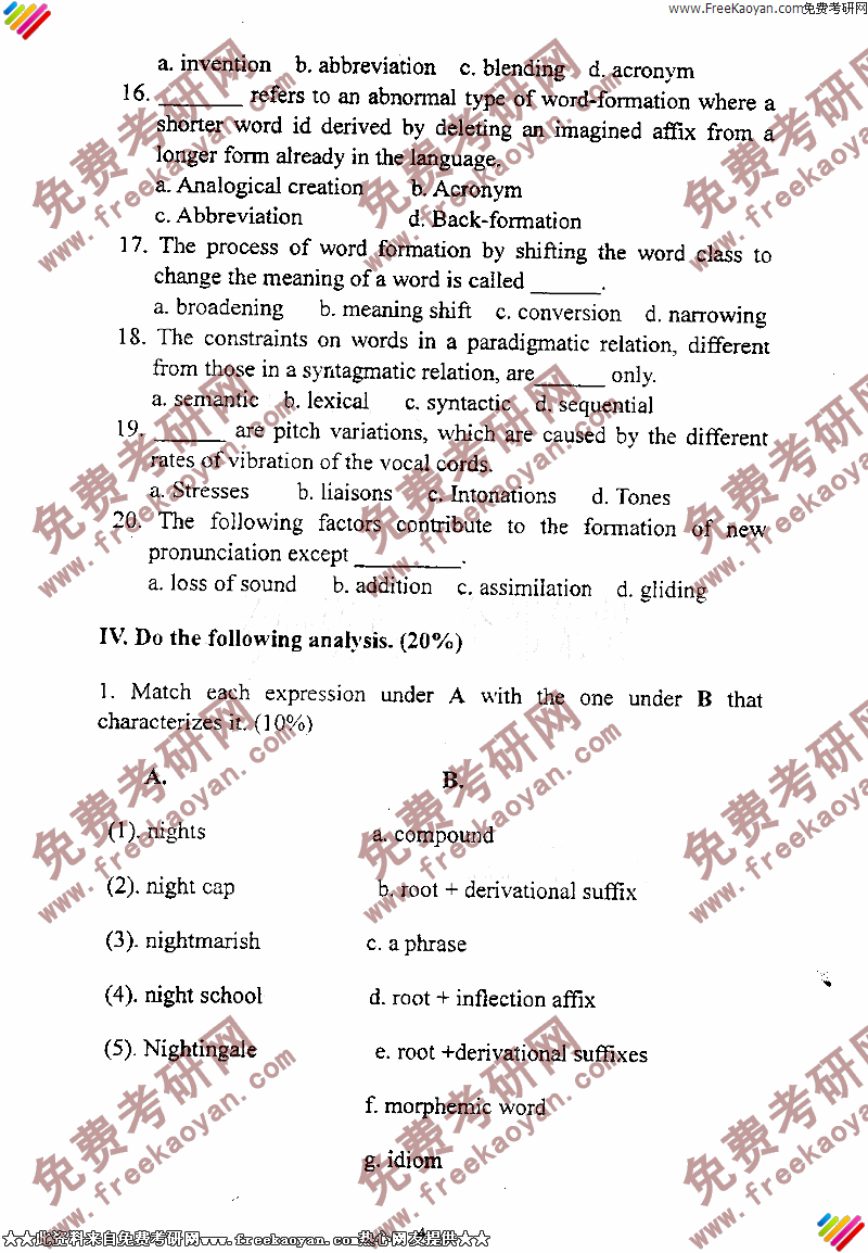 专业课考研经验 本站小编 FreeKaoyan 2018-01-22大连外国语大学2003年考研真题-英语语言学