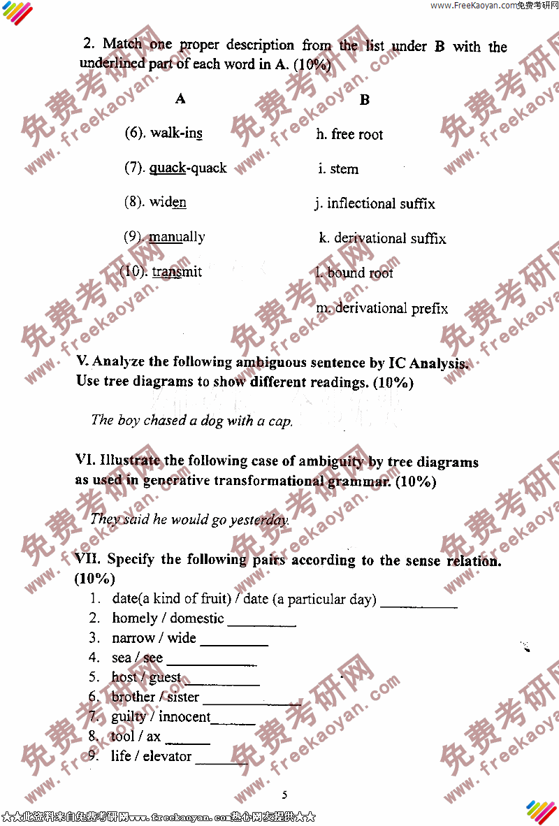 专业课考研经验 本站小编 FreeKaoyan 2018-01-22大连外国语大学2003年考研真题-英语语言学