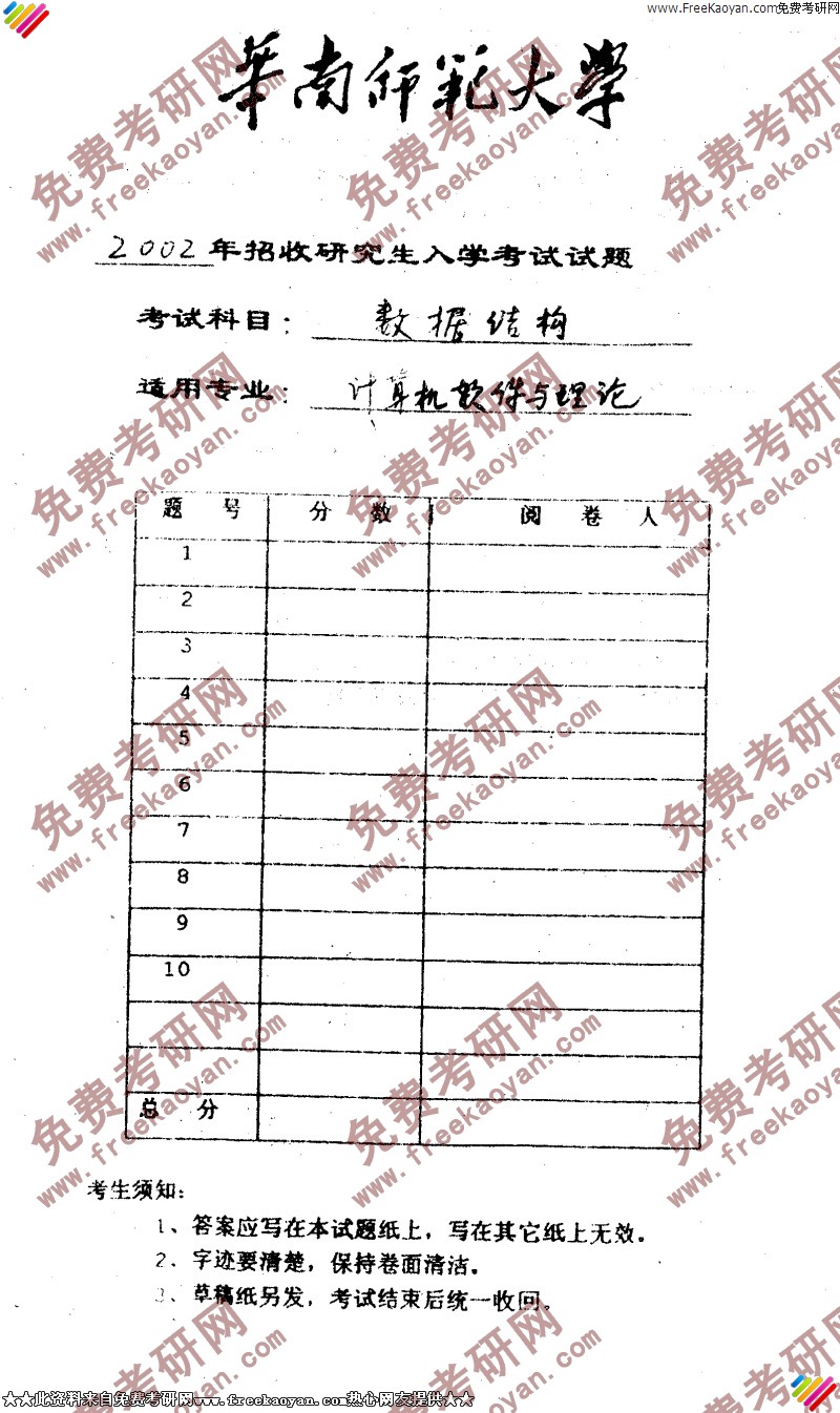 华南师范大学2002年考研真题-计算机科学与技术数据结构