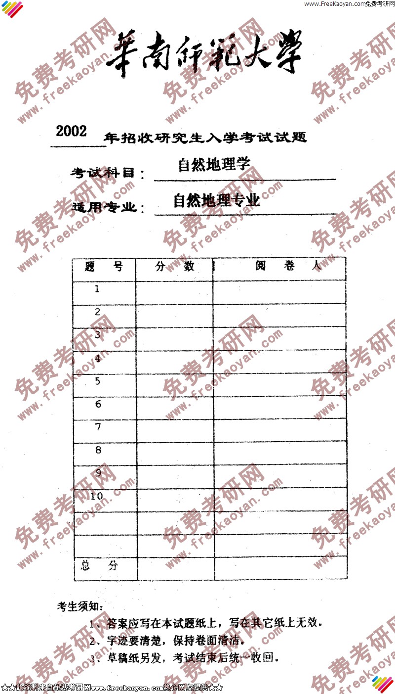 专业课考研经验 本站小编 FreeKaoyan 2018-01-22华南师范大学2002年考研真题-中国地理