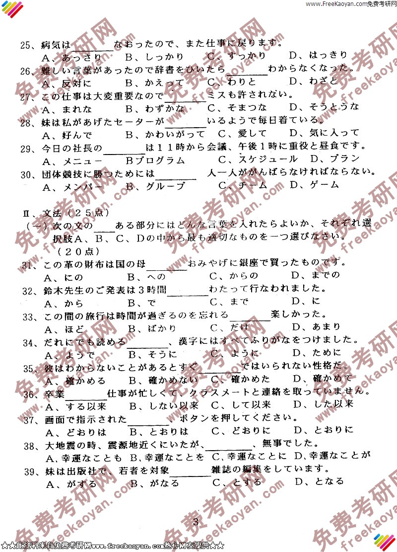 华南师范大学2003年考研真题-二外日语(3)