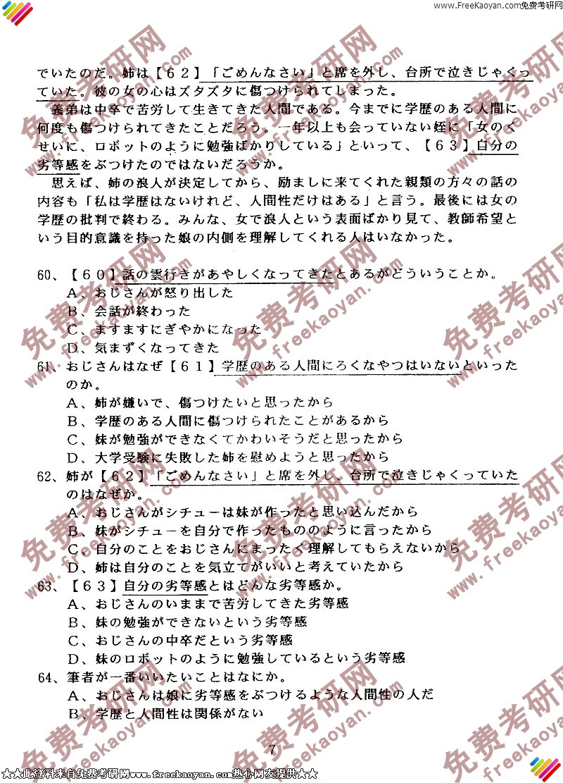 华南师范大学2003年考研真题-二外日语(7)