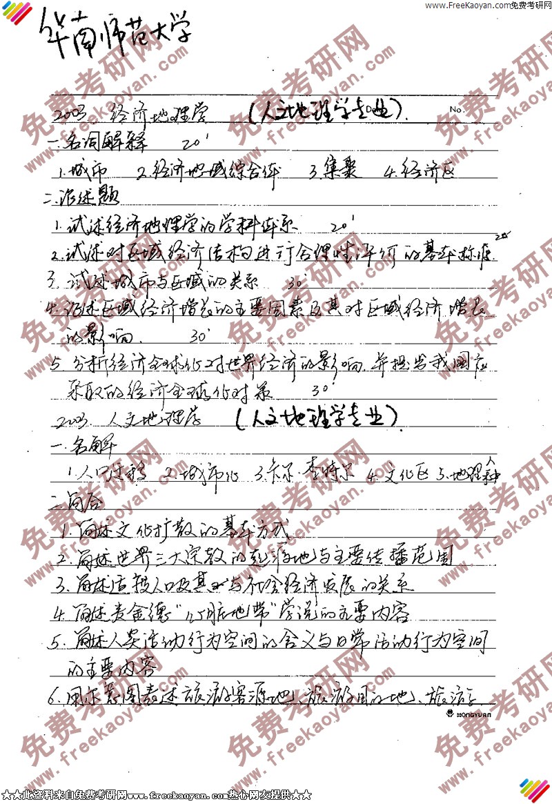 专业课考研经验 本站小编 FreeKaoyan 2018-01-22华南师范大学2003年考研真题-经济地理学