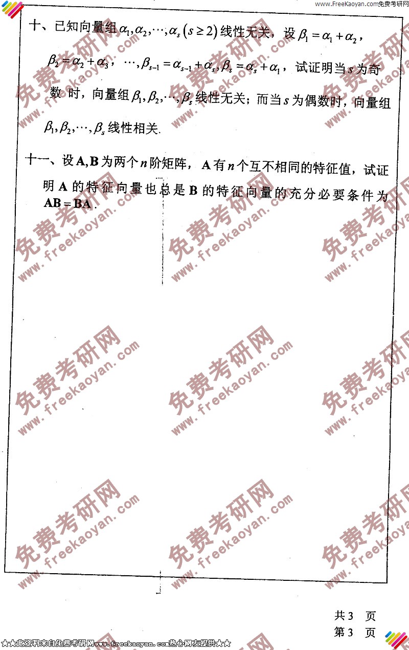 相关话题/考研真题 华南师范大学 线性代数 高等数学